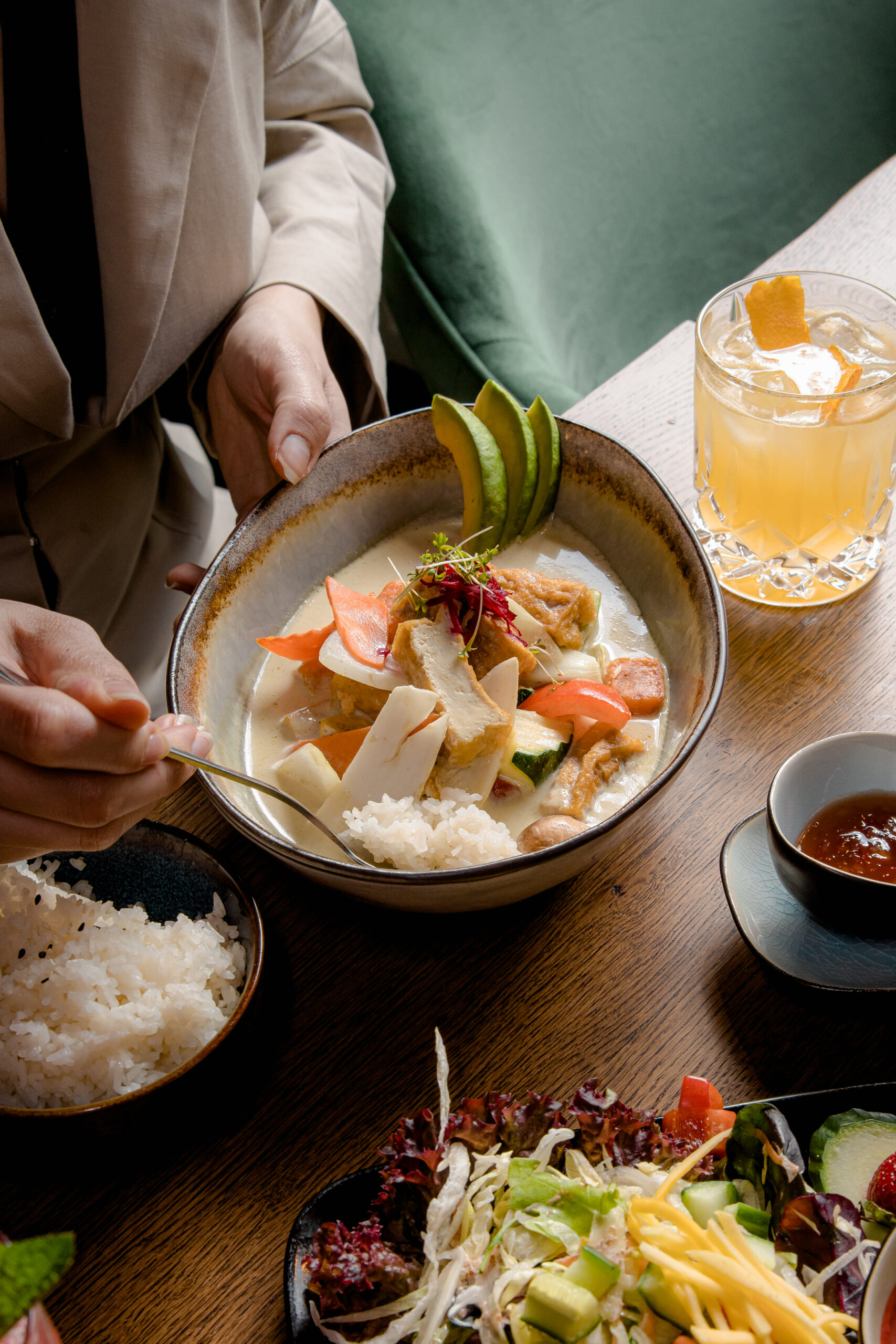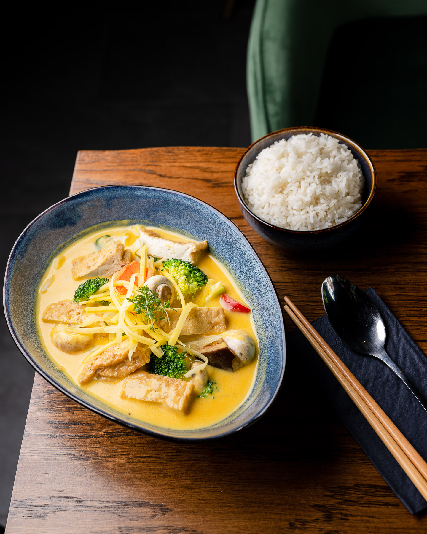 Mit chilipaste, kokosmilch und saisonalem gemüse